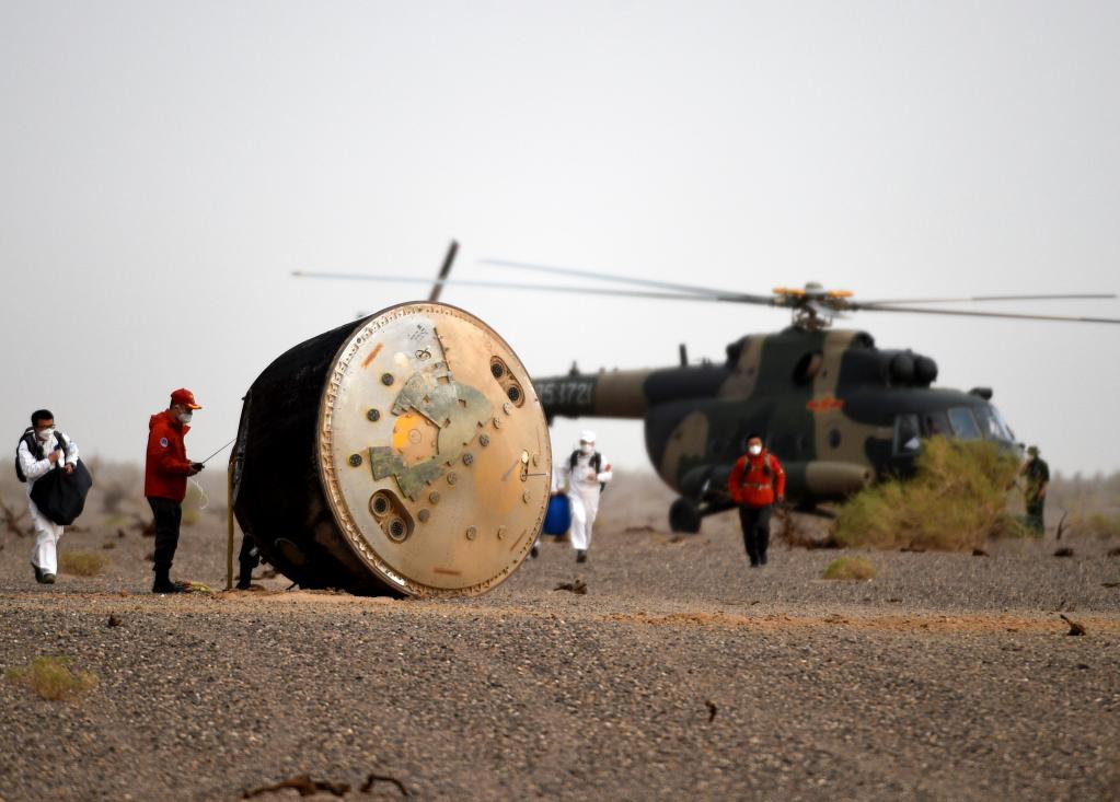 6月4日,神舟十五号载人飞船返回舱在东风着陆场成功着陆。新华社记者 连振 摄