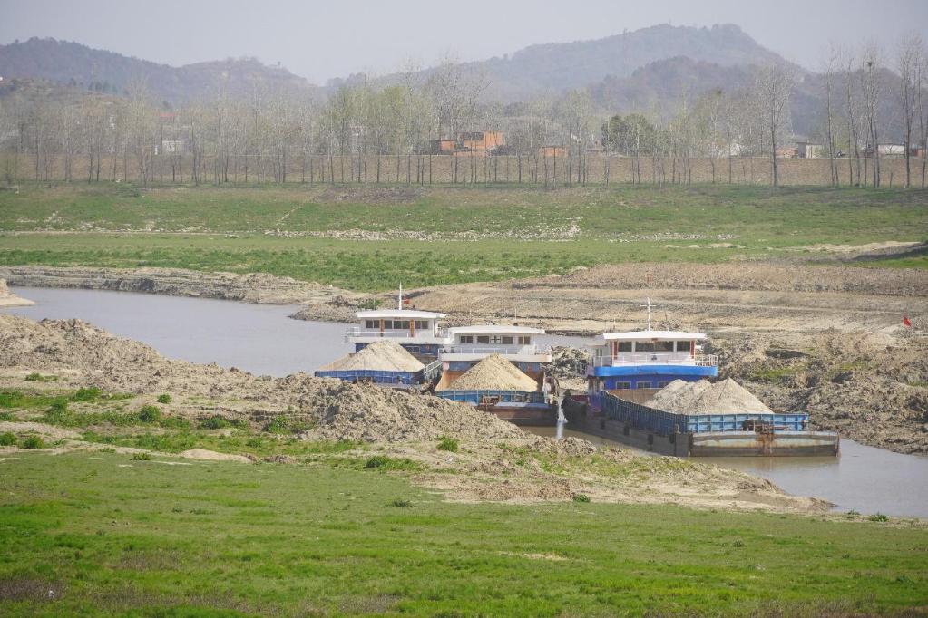 长江某支流一处采砂厂附近的河床。 (新华社记者董雪 摄)