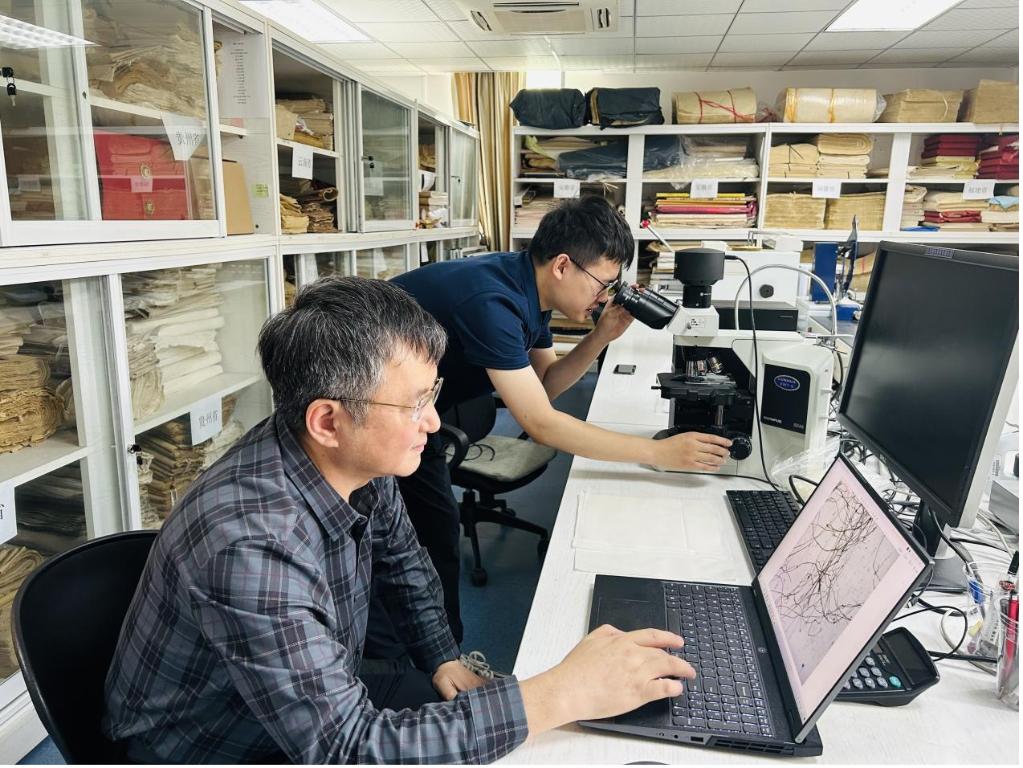 手工纸研究所正在进行手工纸的纤维测试与观察。新华社记者 周畅 摄