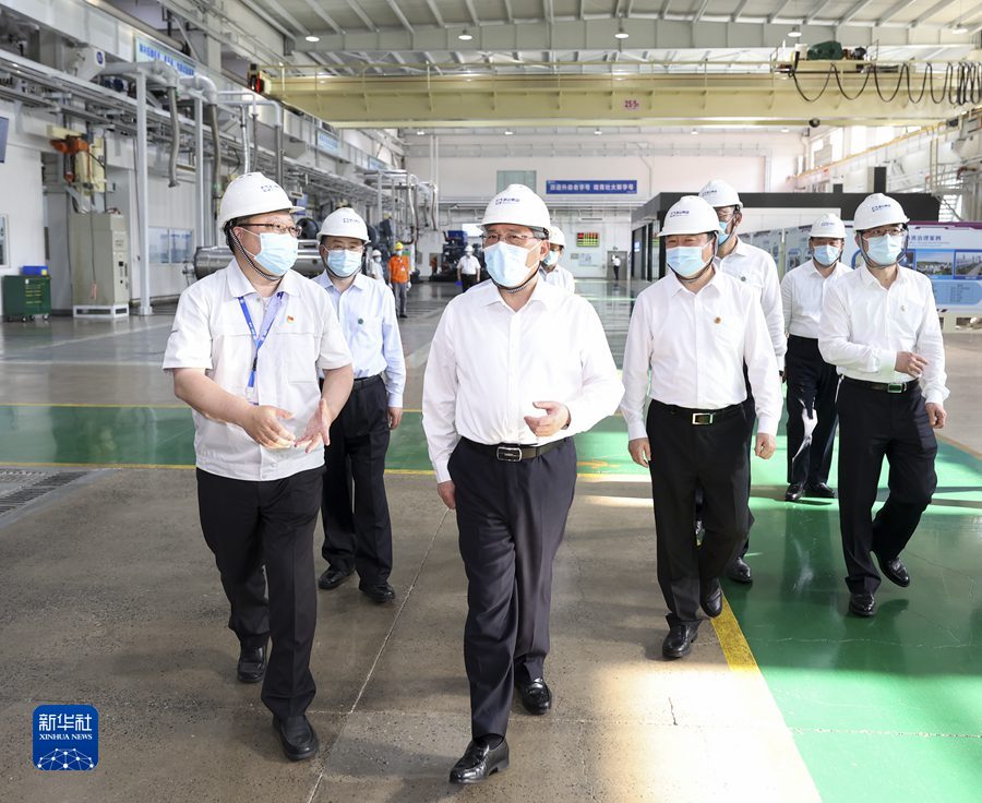 6月7日至8日,中共中央政治局常委、国务院总理李强在辽宁调研。这是6月8日,李强在沈阳航空动力产业园考察。新华社记者 丁海涛 摄