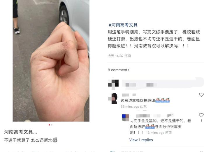 今年河南高考期间,不少河南考生表示统一配备的文具难用。争议较为激烈的集中在郑州,考生反映考场发放的“爱好”牌中性笔。存在笔漏墨、断水等问题。有考生向监考老师反映,更换用笔后仍然不行。