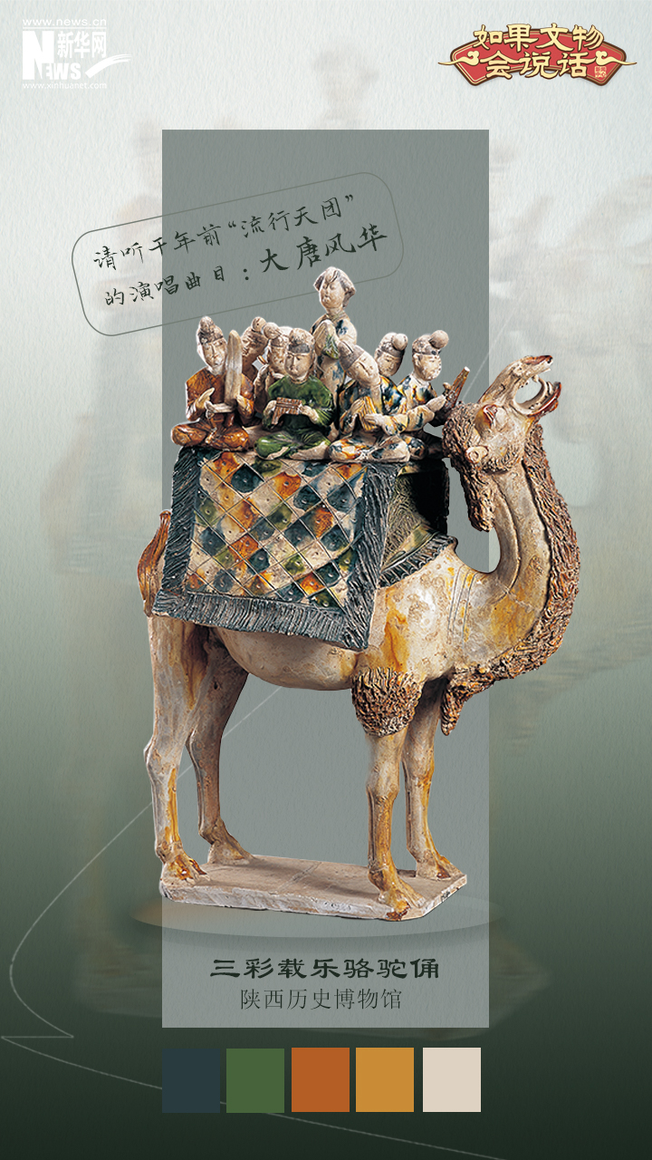 唐三彩骆驼载乐俑