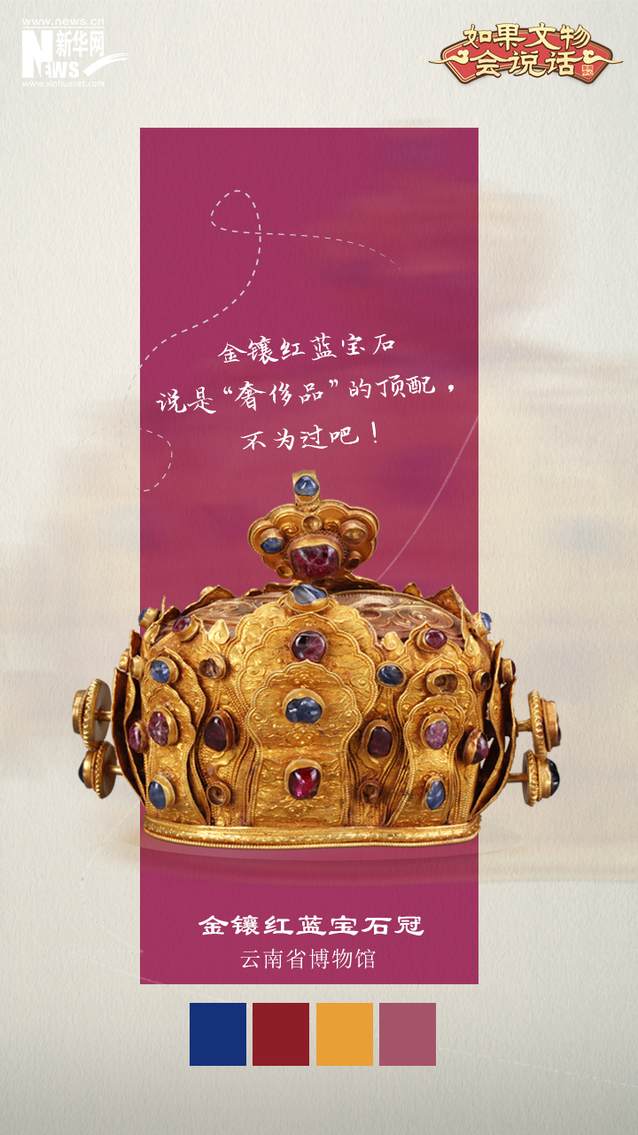 冠面镶嵌有红 蓝 绿等