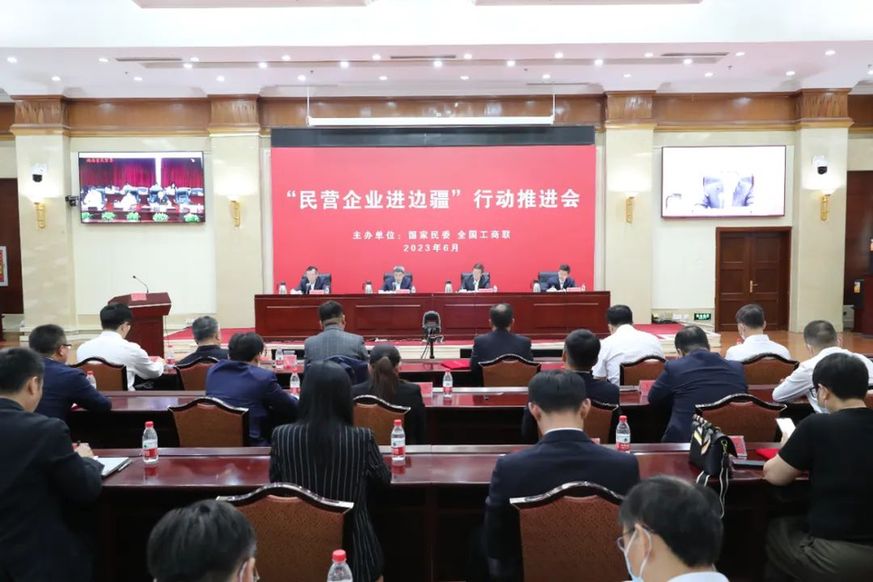 会议指出,“民营企业进边疆”行动是国家民委、全国工商联以习近平新时代中国特色社会主义思想为指导,深入贯彻落实党的二十大精神和习近平总书记关于加强和改进民族工作的重要思想、关于民营经济发展的重要论述精神,动员引导广大民营企业积极参与边疆地区建设的重要举措。要认真贯彻落实党中央关于“加强边疆地区建设,推进兴边富民、稳边固边”重大决策部署,深入贯彻落实习近平总书记近日在内蒙古考察时所作重要讲话精神,坚持以铸牢中华民族共同体意识为主线,站在强国建设、民族复兴的战略高度加强边疆地区建设,扎实推动“民营企业进边疆”行动,助力边疆民族地区高质量发展,让各族人民实实在在感受到推进共同富裕在行动、在身边。