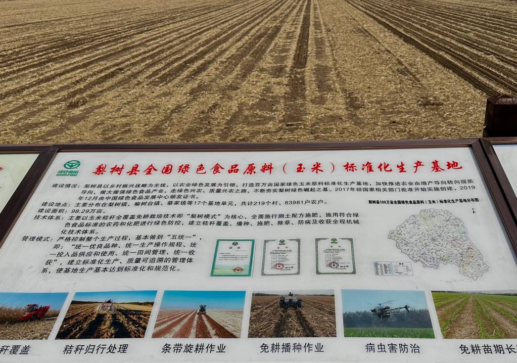吉林省四平市梨树县介绍保护性耕作内容的展板。新华社记者 马晓成4月24日摄
