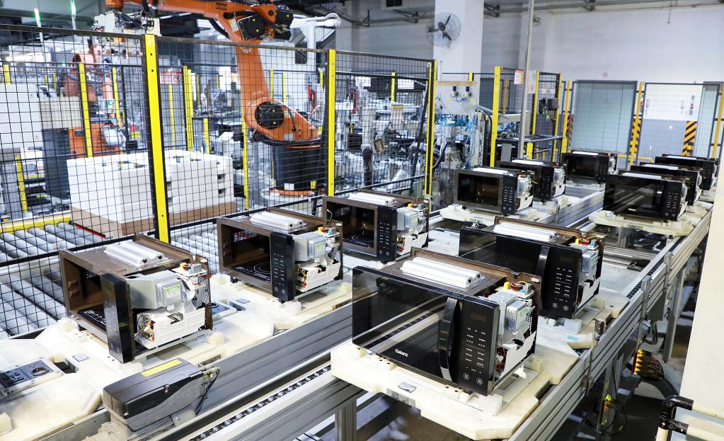 这是格兰仕微波炉总装车间。新华社记者刘宏宇 摄