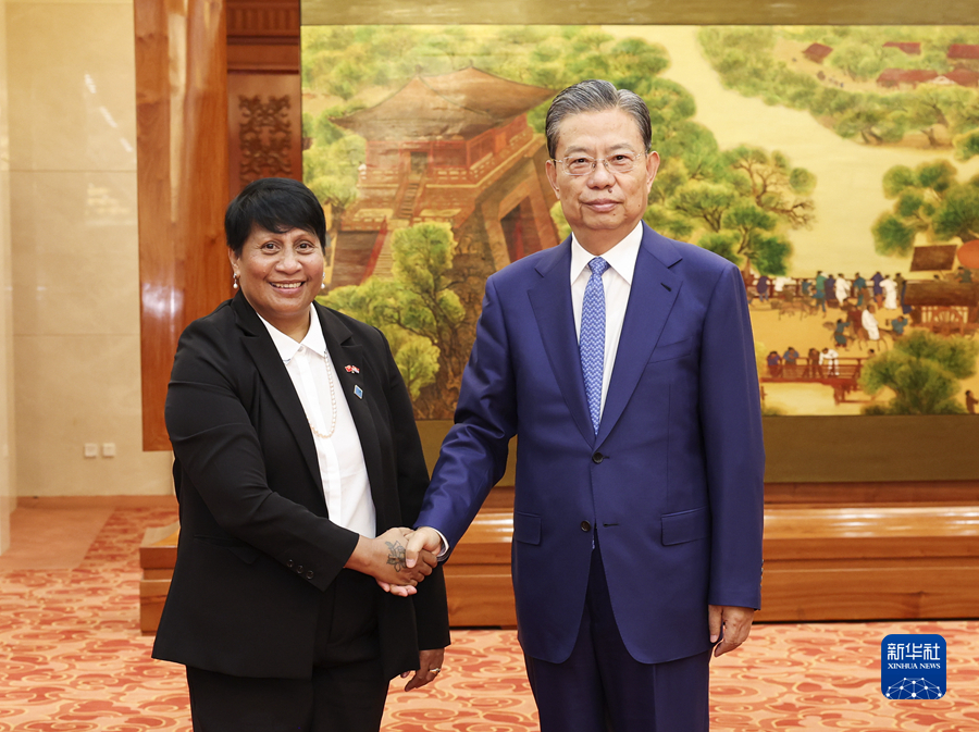 6月15日下午,全国人大常委会委员长赵乐际在北京人民大会堂同基里巴斯议长里特举行会谈。新华社记者 庞兴雷 摄