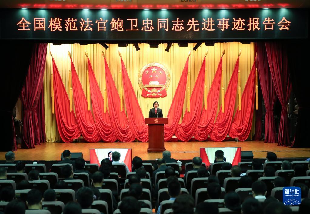 新华社北京6月15日电(记者齐琪)最高人民法院15日召开全国模范法官鲍卫忠同志先进事迹报告会。鲍卫忠同志生前系云南省临沧市沧源佤族自治县人民法院党组成员、执行局局长,一级法官。2021年10月21日,鲍卫忠在工作岗位上突发疾病,送医院抢救无效后于10月23日去世,年仅45岁。最高人民法院与中共云南省委追授鲍卫忠同志“全国模范法官”“云南省优秀共产党员”荣誉称号。