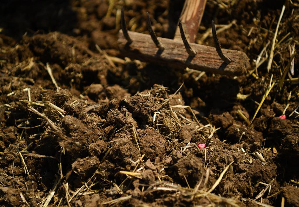 陕西省西安市鄠邑区赵王镇村,农户在已经播种的田间松土。新华社记者 张博文 摄