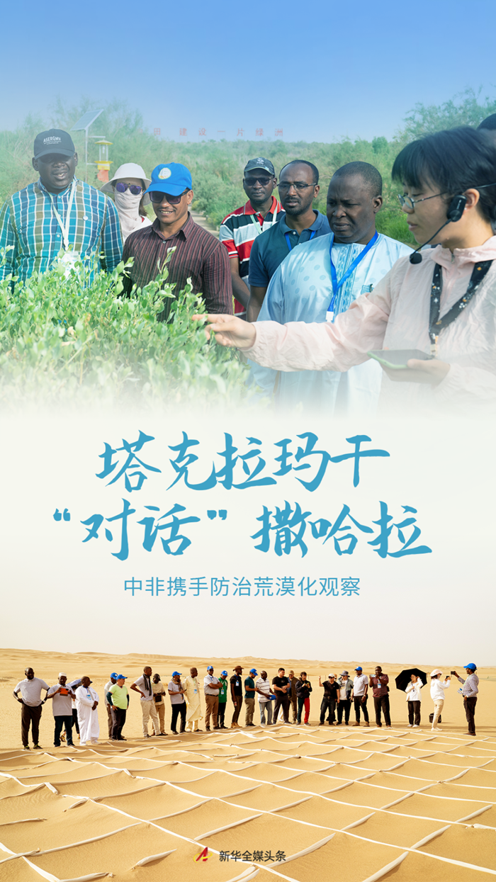 你中有我,我中有你,中非从来都是命运共同体。携手向前,探索未来,中非持续在生态环保领域交流合作,让荒漠化防治造福人类,共护和谐共生的地球家园。