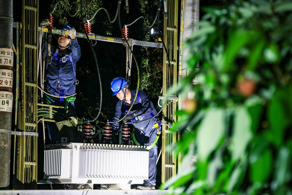 南方电网广西钦州浦北供电局工作人员在连夜抢修受损设备。 曾可凡 摄