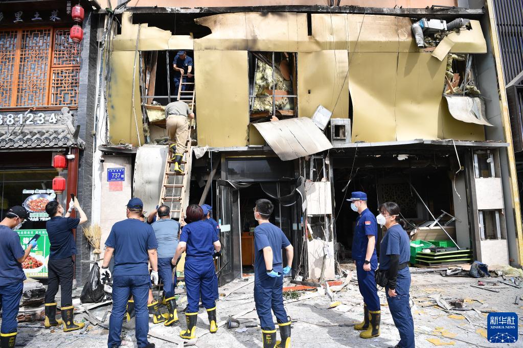6月22日,工作组人员进入银川市兴庆区富洋烧烤店燃气爆炸事故现场进行勘查。新华社记者 王鹏 摄