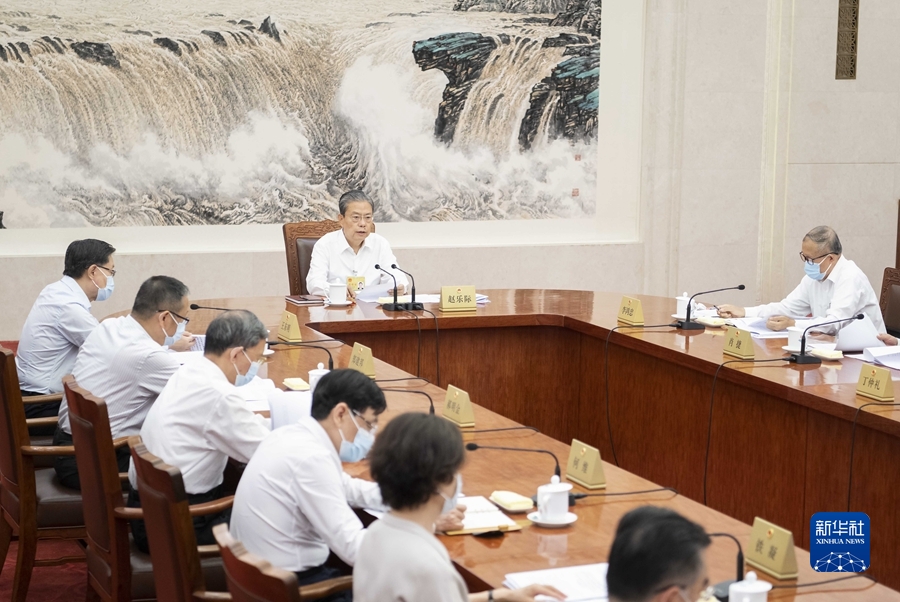 6月27日上午,十四届全国人大常委会第六次委员长会议在北京人民大会堂举行。赵乐际委员长主持。新华社记者 李涛 摄