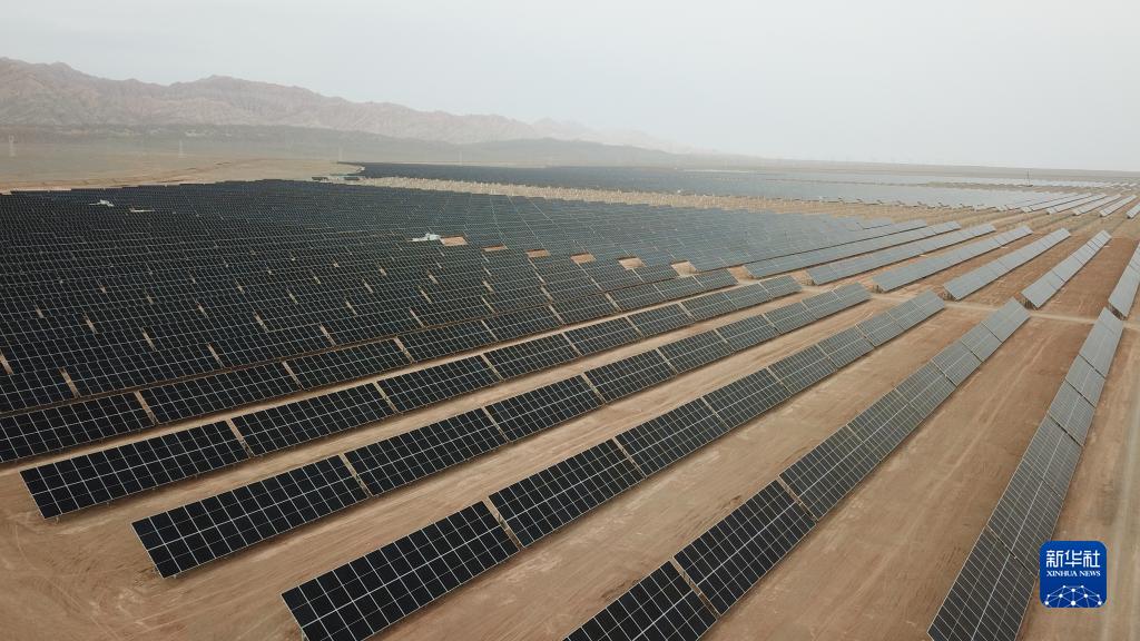 这是6月28日拍摄的中国石化新疆库车绿氢示范项目光伏电站(无人机照片)。新华社记者 宿传义 摄