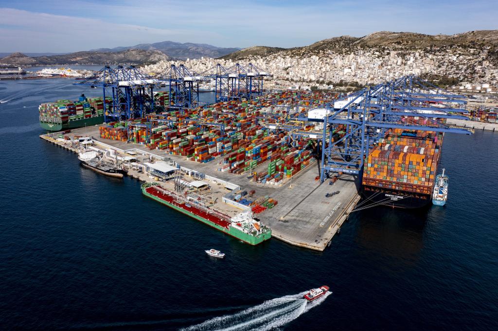 这是希腊比雷埃夫斯港集装箱3号码头。作为“一带一路”倡议的典范项目,比雷埃夫斯港已成为地中海地区领先的集装箱大港之一、欧亚双向陆海联运通道新枢纽。