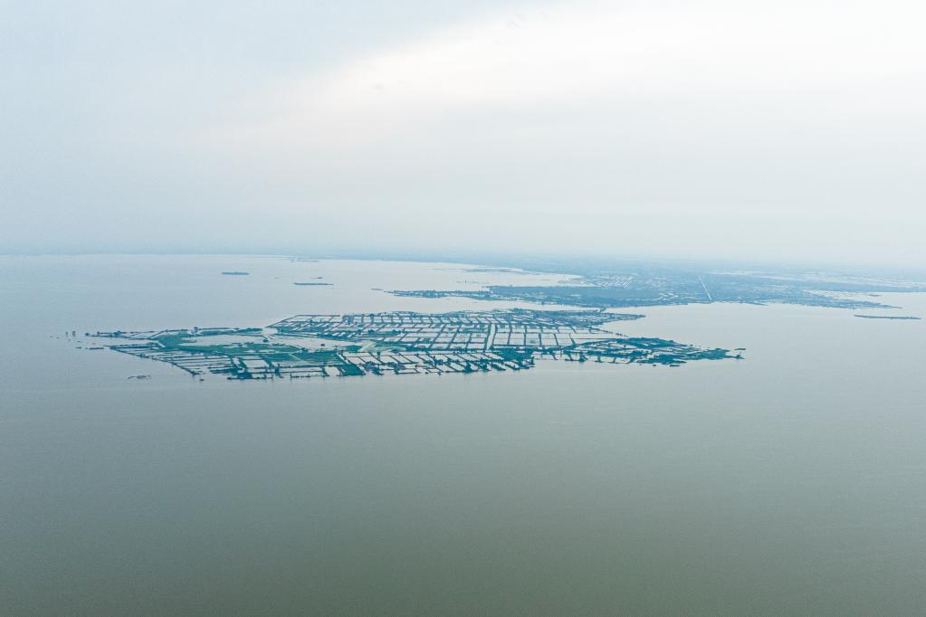 与传统鱼蟹养殖模式不同,在与洪湖一水之隔的螺山镇,一道道沟渠将万亩池塘串联起来,鸢尾、美人蕉等可净化水质的挺水植物连绵生长,形成一个水体连通的生态养殖系统。