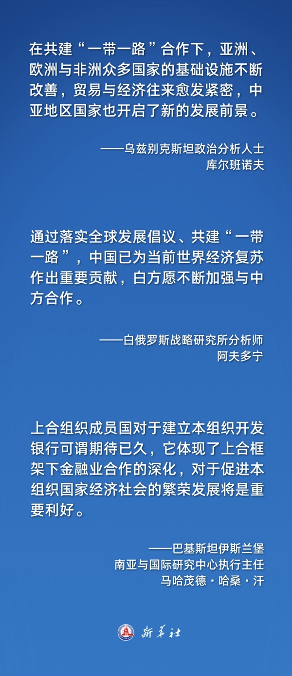 俄罗斯学者卡申说:“在中国不懈推动下,上合组织正朝着更为全面的方向发展,在地区和国际舞台上肩负着更加广泛和重要责任,在加强稳定和安全、打击恐怖主义、发展经济合作及能源伙伴关系、深化科学和文化合作等方面发挥作用。”