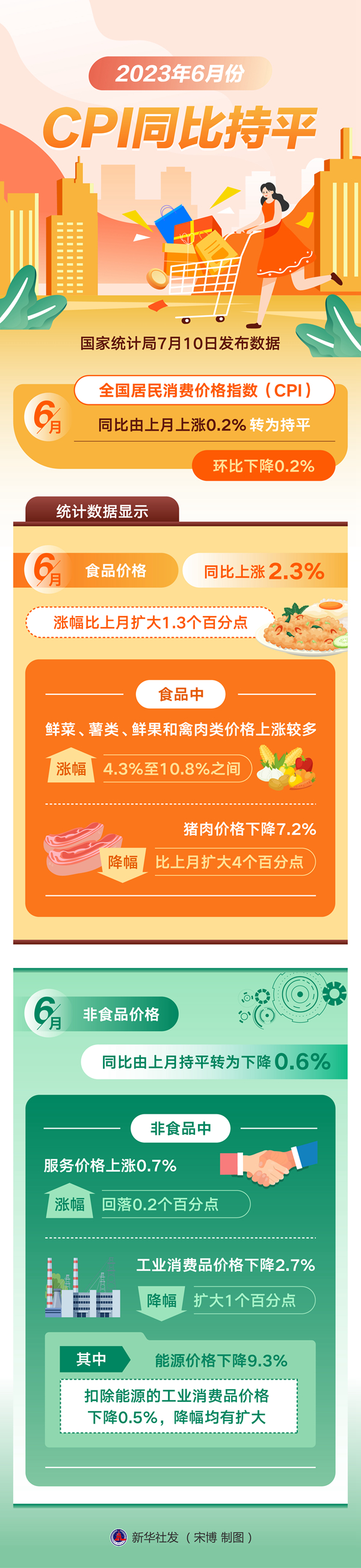 新华社北京7月10日电 题:持续平稳运行 保供稳价有支撑——透视上半年我国物价数据