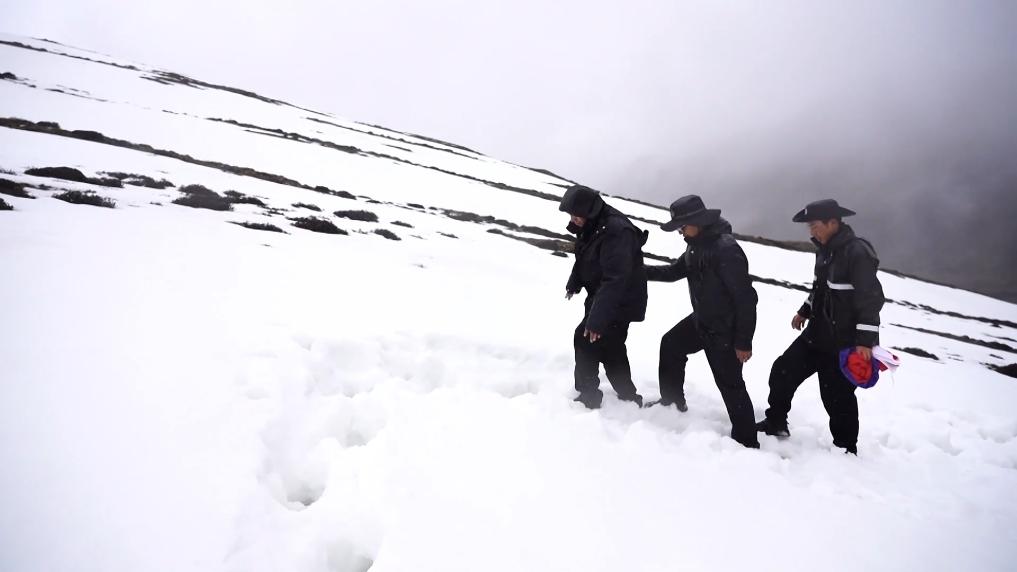 巡山,是民警们的重要工作。每次在清晨出发巡逻,大多要到傍晚才能回到驻地。在高海拔山区,即使空手行走也相当艰难。步行巡逻十多个小时,对每个人的体力都是极大的挑战。民警在巡逻中一旦出现紧急情况,就要立即前往山下就医,而其他民警也会上山补位。但只要不是出现特别严重的情况,大家都会坚持。