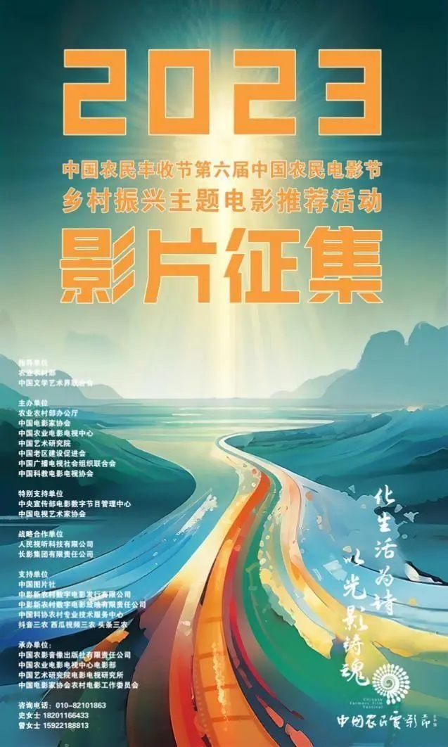 这个夏天,中国农民电影节继续坚持以农民为主体、农业为主线、农村为主场的初心,组委会与中国艺术研究院联手,正式启动了“2023乡村振兴主题电影推荐活动”,目前已有多家出品单位积极参与中。最终,获得推荐资格的影片将参加线上、线下公益展映活动,获邀出席“2023中国农民丰收节第六届中国农民电影节”开幕晚会,参加红毯仪式、乡村采风、影片专访、影片座谈等系列活动。在此,我们继续呼吁广大新时代中国电影人以镜头为笔,以山水为卷,以光影铸魂,共同谱写出一首展现中国新时代乡村生活风貌的长诗,进而展现中国新文化乡村精神风貌的独特魅力,赋能乡村振兴的全面发展。让我们一起,在今夏滋长诗意乡村生活,在金秋时节收获绚烂光影果实!