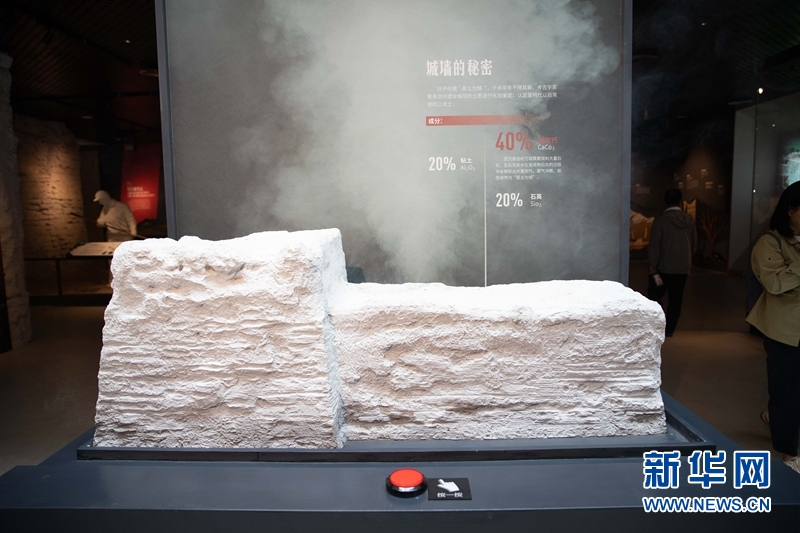 统万城遗址博物馆内“城墙的秘密”介绍、互动演示 新华网记者袁晗摄