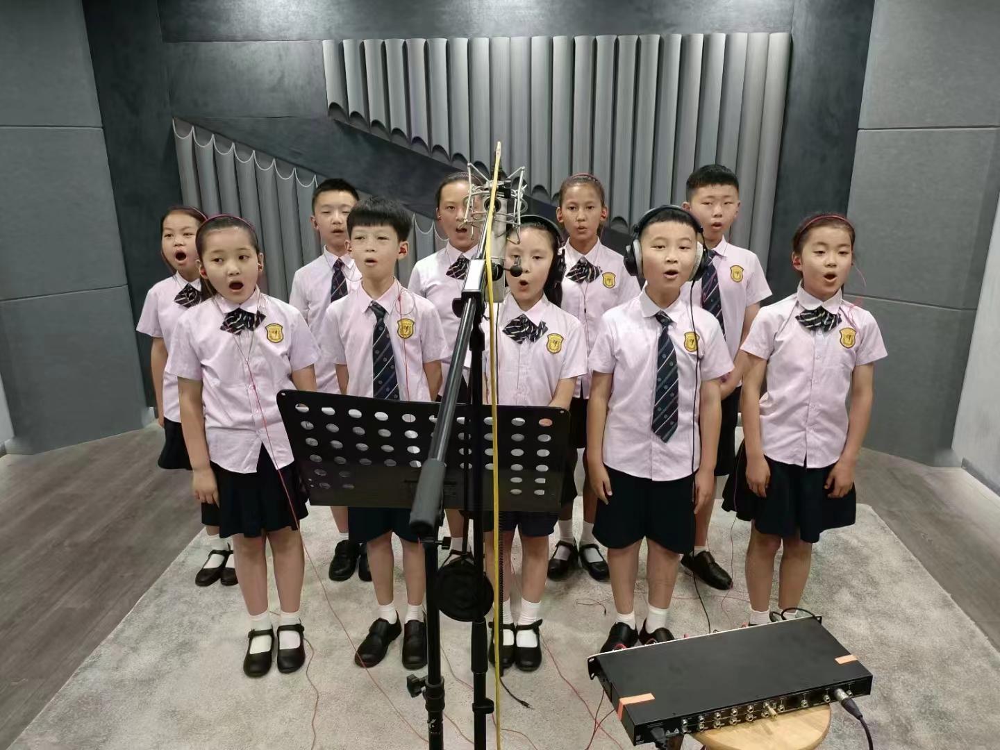 文县东坝童声合唱团在央视录音棚中录制《大山里的孩子》。