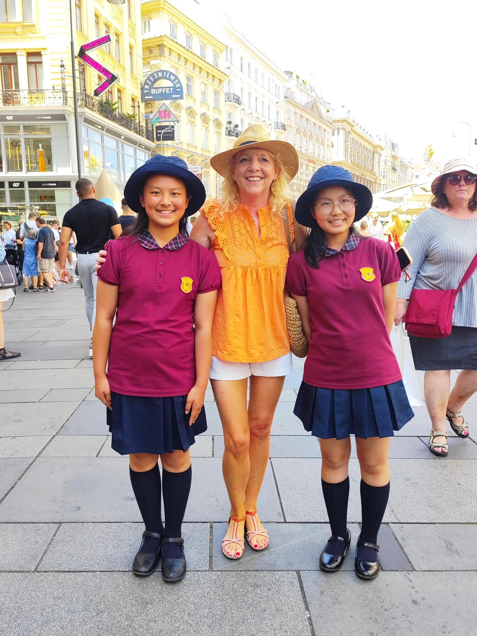 崔云蒙(右)、班琴在维也纳街头与音乐爱好者合影。