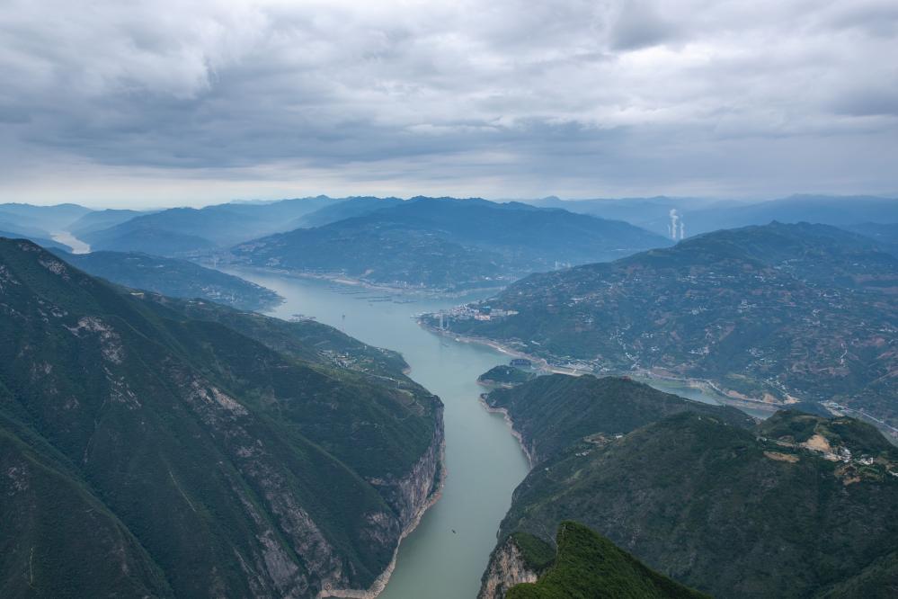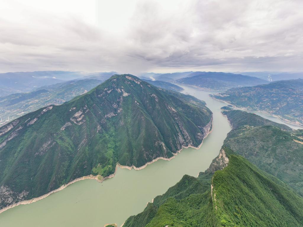 ↑这是7月1日在重庆市奉节县拍摄的瞿塘峡一带景色(无人机拼接照片)。
