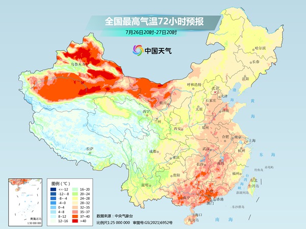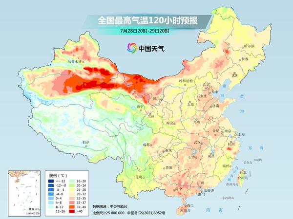 另外,新疆的朋友们也要迎来降温曙光了!大家再坚持五六天,29日起这里的高温将逐渐减弱,届时除了吐鲁番盆地等地高温“顽强”持续,其余不少地区最高气温将降到35℃以下。
