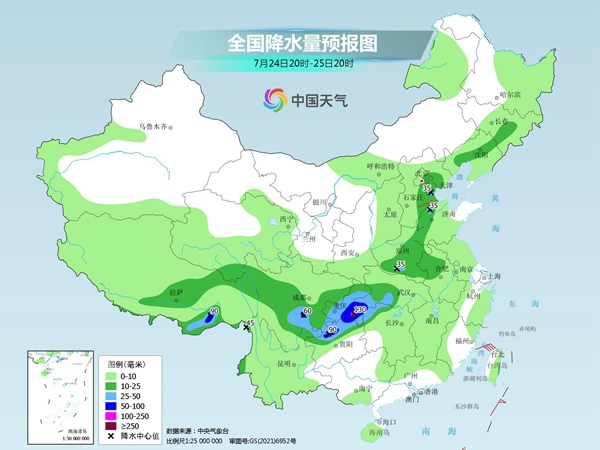 24-26日,四川、重庆、贵州、云南北部等地有中到大雨,四川南部、重庆南部、贵州北部等地部分地区暴雨,局地大暴雨,过程累计20~50毫米,部分60~120毫米,局地150~200毫米;同时由于这一带能量以及水汽条件都比较好,短时强降雨特征明显,小时雨强可达30~50毫米,局地60毫米以上,并伴有雷暴大风等强对流天气。
