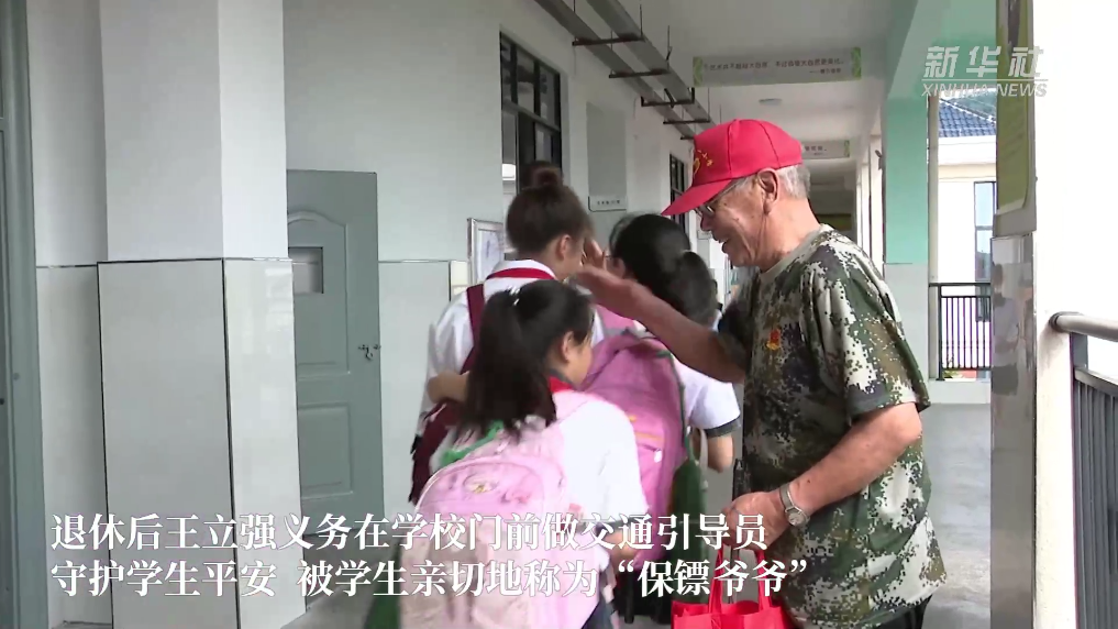 年轻时在部队多年,他与妻子孩子聚少离多,每次回家都被孩子叫作“叔叔”。退休后,为补上缺失的“父爱”这一课,他在当地学校门口做义务交通疏导员7年多,守护学生安全,被学生们亲切地称为“保镖爷爷”。