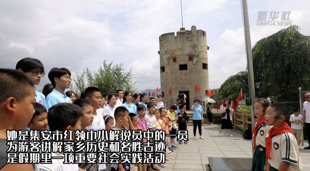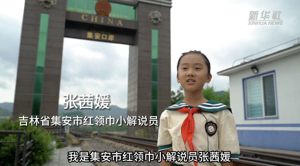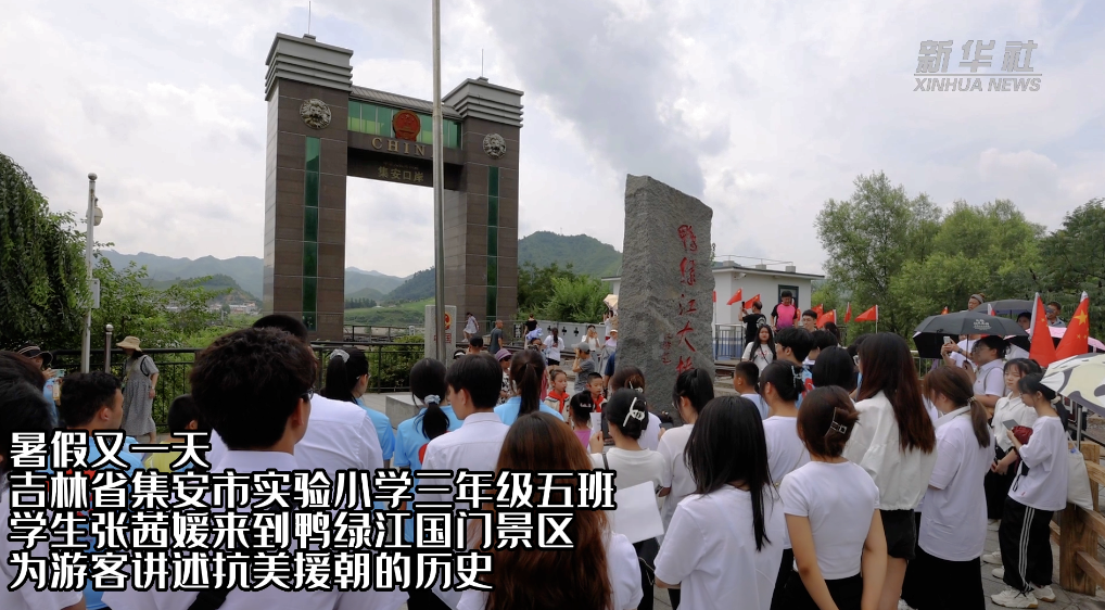 暑假又一天,吉林省集安市实验小学三年级五班学生张茜媛来到鸭绿江国门景区,为游客讲述抗美援朝的历史。她是集安市红领巾小解说员中的一员,为游客讲解家乡历史和名胜古迹,是假期里一项重要社会实践活动。