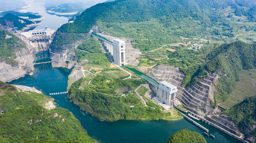 乌江构皮滩水电站通航工程(2021年6月22日摄,无人机照片)。新华社记者陶亮 摄