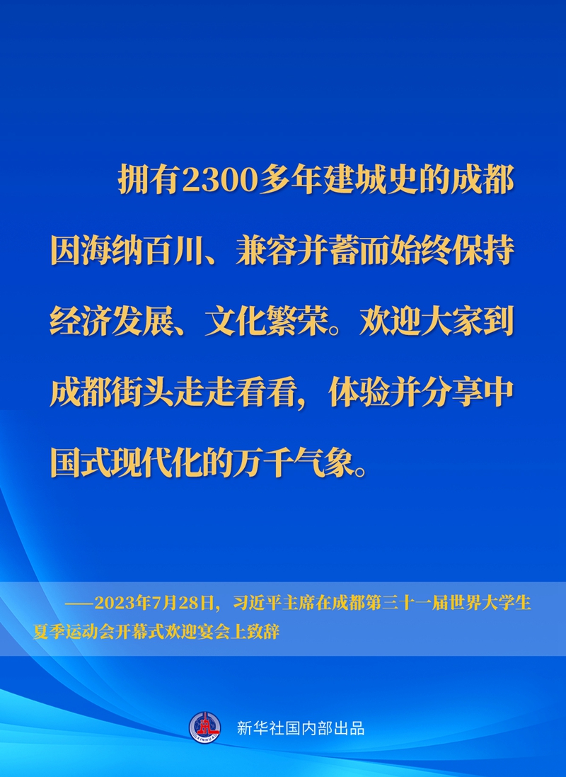 新华社权威速览丨习近平主席在成都第三十一届世界大学生夏季运动会开幕式欢迎宴会上致辞