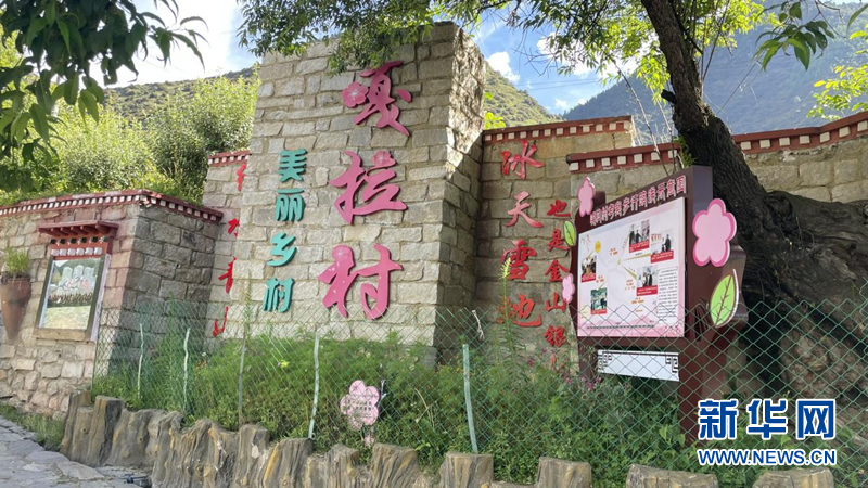 图为嘎拉村村口。新华网 陈颖 摄