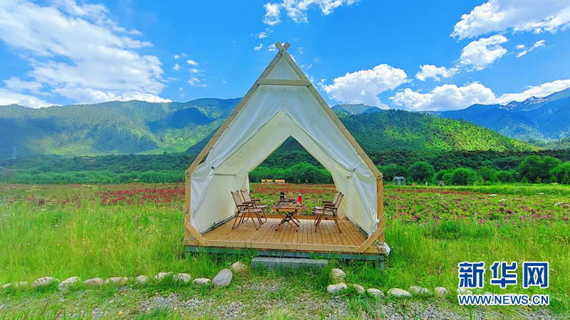 “游客在这里不仅可以赏花、采摘,还能体验露营、亲子乐园、烧烤等娱乐项目。”工布花谷农业观光生态园负责人李磊介绍道,“园区除了支付朵当村土地租金,还雇了不少村民在这里工作。”