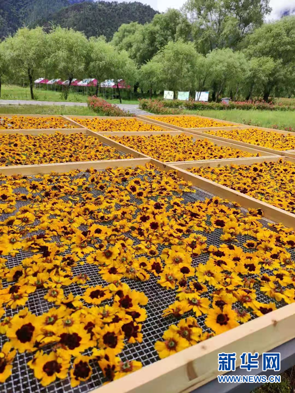 图为工布花谷农业观光生态园内正在晾晒的雪菊花茶。(工布花谷 李磊 供图)