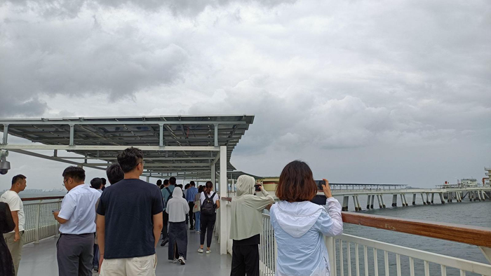 “耕海1号”是全国首个智能化大型生态海洋牧场综合体平台,在水下布设大量传感器,并通过5G通信技术,实现对水质环境亚毫秒级的水下视频及水质监测数据收集传输,还可实时监测温度、盐度、流向等水质水文情况,海面气温、气压、湿度、风速和降雨量等气象情况。(文字/科技日报记者 李禾 陆成宽 摄影/科技日报记者 李禾)