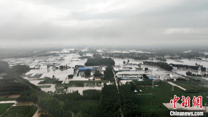 航拍涿州市刁窝镇塔照村附近被洪水淹没。(无人机照片)翟羽佳 摄