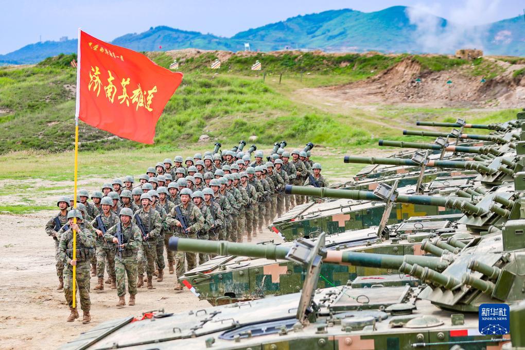 陆军第71集团军某旅“济南英雄连”连长孙金龙与连队官兵奔赴演训场(6月7日摄)。新华社发(黄振宇 摄)