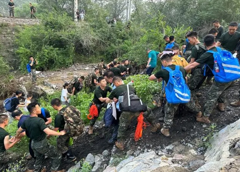 在河北保定涞水的三坡镇,救援工作仍在进行,当地已转移游客和群众2.6万人,16个失联村庄取得联系。