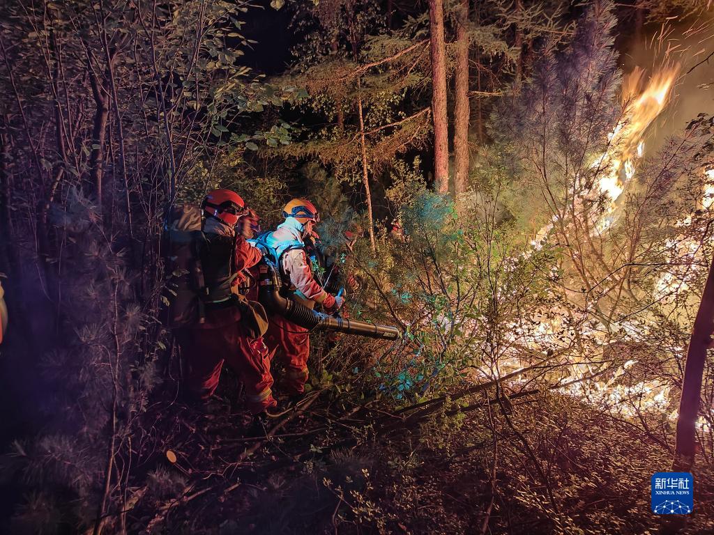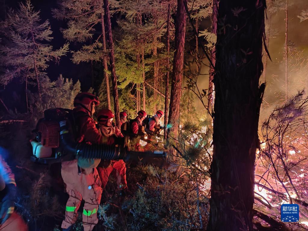 8月8日,内蒙古呼伦贝尔市森林消防支队官兵在内蒙古大兴安岭林区内灭火。新华社发