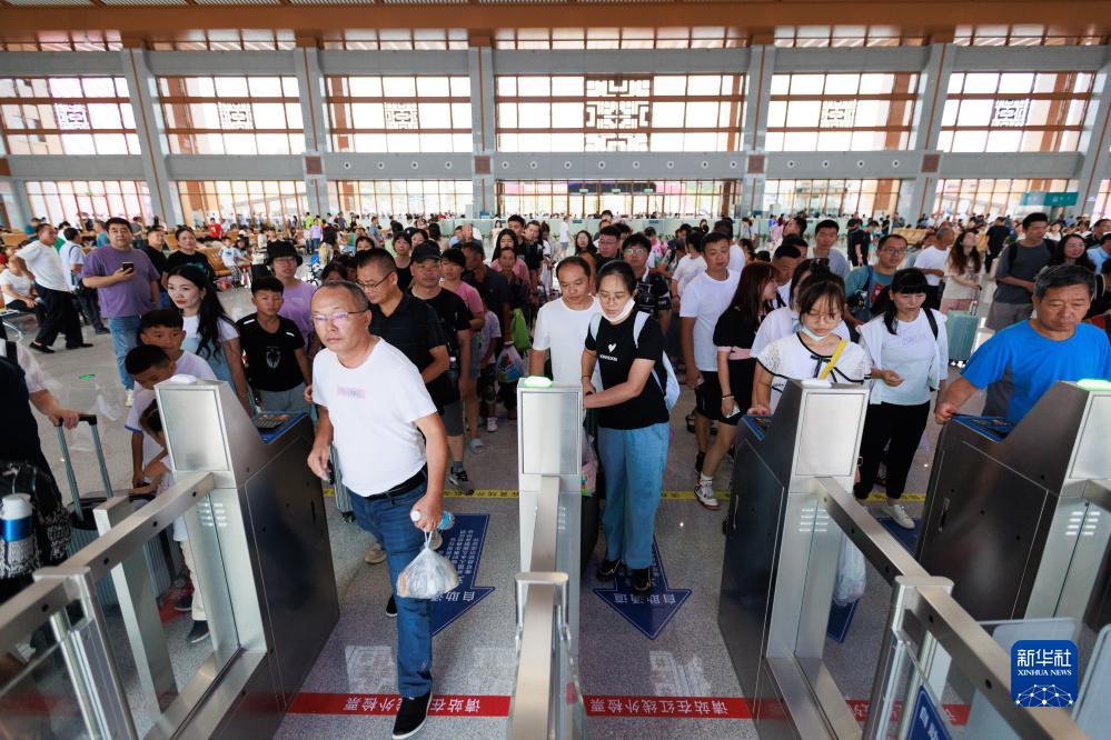8月8日,旅客在荔波站内检票上车。当日,随着贵阳北至荔波的D6171次列车驶出贵阳北站,贵阳至南宁高速铁路贵阳至荔波段正式开通运营。