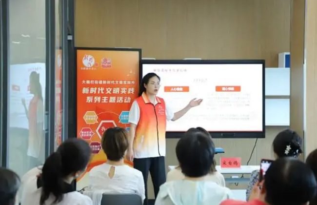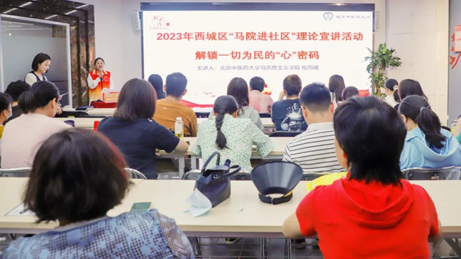新街口街道“马院进社区”首场专题理论宣讲,来自北京中医药大学马克思主义学院的宣讲员伦雨晴以“解锁一切为民的‘心’密码”为主题进行宣讲。北京市西城区文明办供图