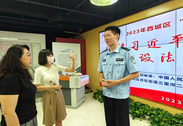 社区居民为中国人民公安大学宣讲团成员刘峻豪的宣讲“点赞”。北京市西城区文明办供图