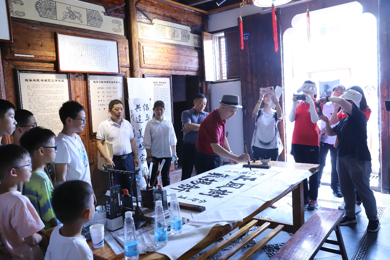 7月19日,南昌县八一乡钱溪村的志愿书法爱好者在展示书法技艺。(地方媒体供图)