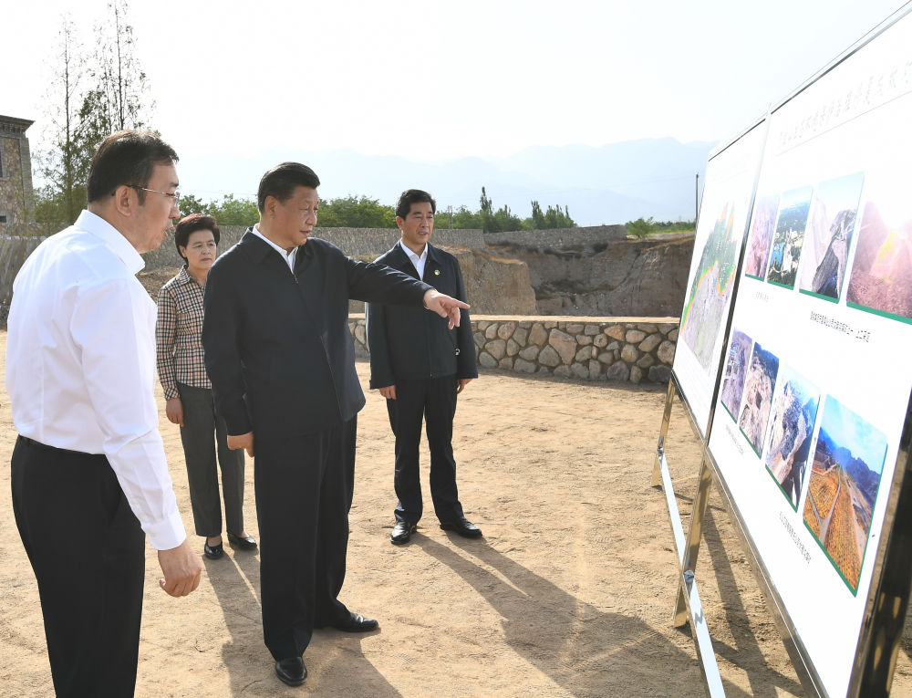 2019年8月21日下午,习近平在甘肃省兰州市黄河治理兰铁泵站项目点了解黄河治理和保护、堤坝加固防洪工程建设等情况。