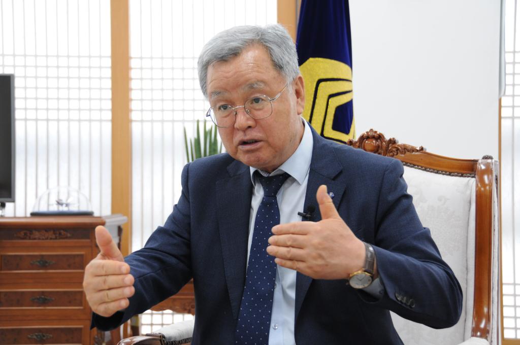 6月12日,在韩国忠清南道天安市,韩国独立纪念馆馆长韩诗俊接受新华社记者专访。新华社记者周思雨摄