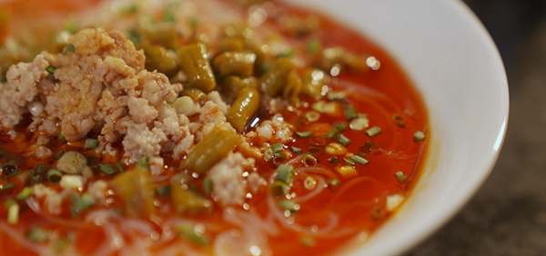 嫩滑的细粉 香辣的红油 鲜浓的筒骨黄豆汤