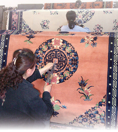 盐池县一家地毯生产企业的工人在制作羊毛地毯。盐池县委宣传部提供